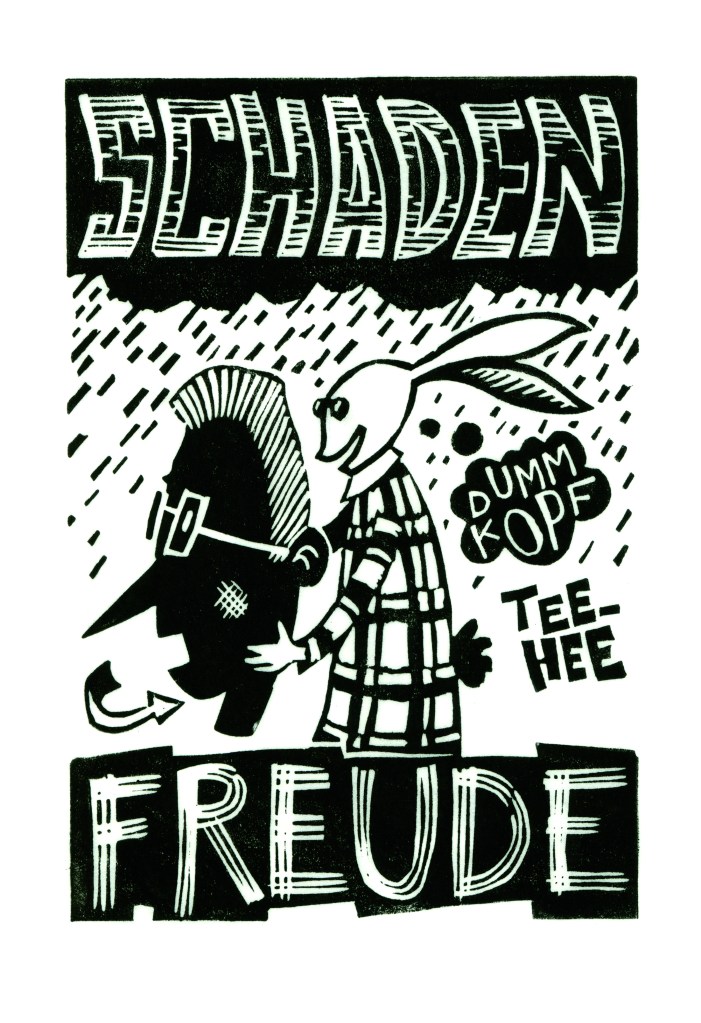 Selection from a series of lino prints and scraperboard drawings based on the unkind phrases and words we find in all languages. An aggregating catalogue of insults and petty put-downs. Several prints and drawings also appear in my Artist’s Book, The Mean Bone.