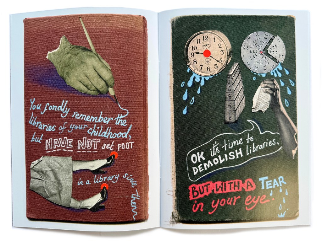 You Love Libraries (double-sided with) When All the Books Are Gone is a 32-page collaborative zine by Jac Batey (UK artist) and Jessy Randall (USA poet).